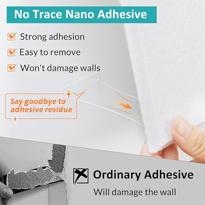 - 【Strong Adhesion & Safe Removal】: Acrylic adhesives with the latest nanotechnology have longer lasting strong adhesion, that prevents the bulletin board from falling off the wall, while being safely removed from the wall without leaving residue or damaging the surface of the wall.