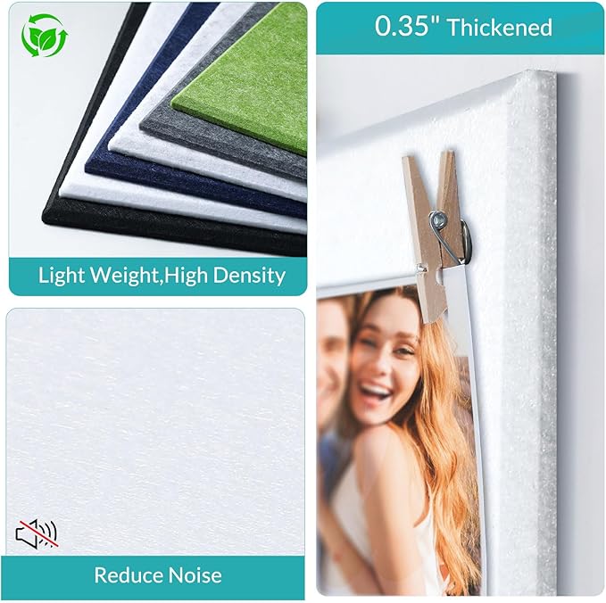 - 【Durable & Noise Reduction】: White bulletin board is made of polyester and lightweight and strong, safe and odor-free, and ideal for indoors. The felt cork board dense and comes with push nails and clip pin to securely fasten to the felt board and will not come off. Pin boards for walls have soundproofing features that help reduce echoes and noise in a room and are suitable for children's bedrooms, homes, schools or offices.