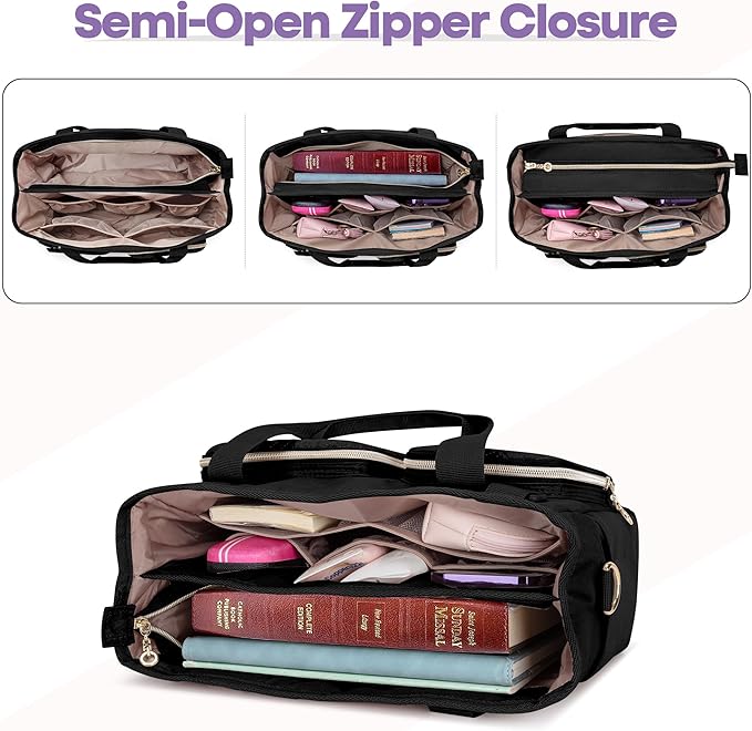 - SMART INTERNAL DESIGN: 2 Main sections, the zippered main compartment for your important items is large and safe enough to hold your bible books, journal notebooks, and iPad. The open design main compartment built-in multiple pockets to keep planners, and other personal items, ensuring everything stays organized and easy to find
