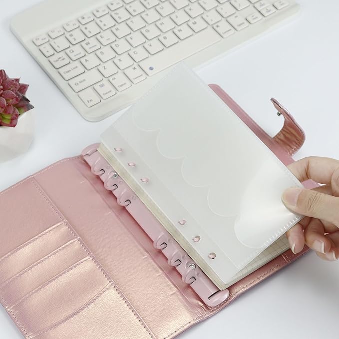 - Package Includes - 5/10 pcs A6 Binder Pockets. Please note that the opening direction and position of the pink Binder Pockets and the purple and clesr frosted divider are different. Please carefully check before purchasing.
