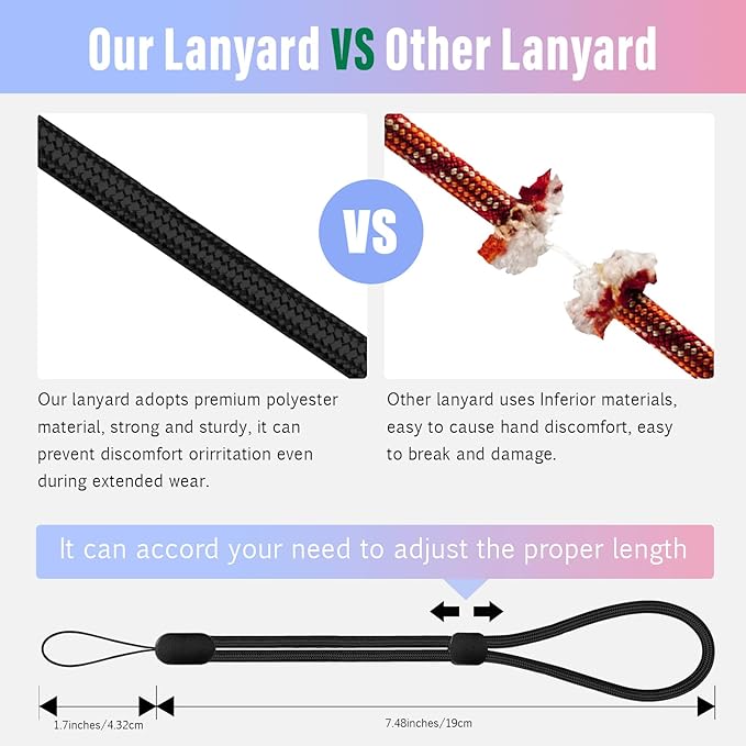 - Adjustable and Drop Protection: Our movable wrist straps measure 21.5cm/8.4 inches in length. With a sturdy movable buckle, long enough to adjust for different sizes of hands and freely adjust the degree of tightness, and truly realize the effect of drop protection