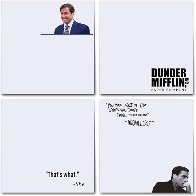 Funny Sticky Notes Cute 4 Pads, Office Sticky Note Pads Michael That's What She Said, Cute Sticky Notes Office Desk Gifts, Self-Stick Note Pads Bulk, Set of 4