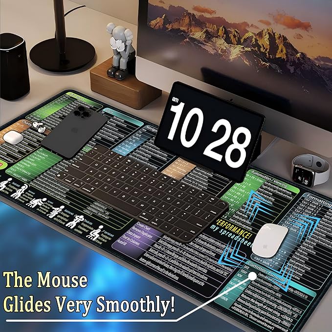 - Excel Shortcuts Mousepad: Features practical Excel functions, formulas, and tricks. This Excel cheat sheet desk pad helps you excel at complex operations and increase productivity.