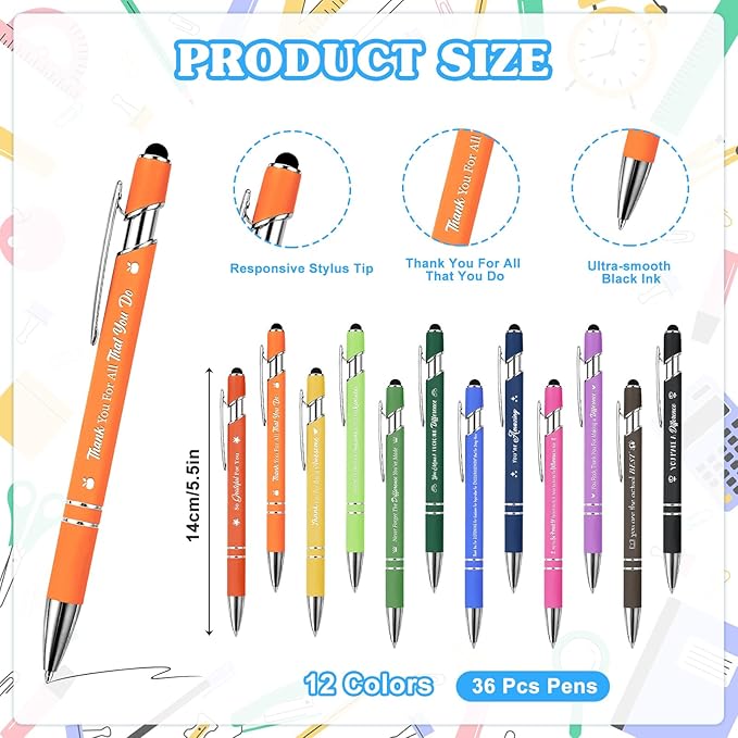 - Inspirational Quotes - Both the notebook and the pen have 12 colors, and different colors are printed with different inspirational and praise quotes, such as "Thank you for all that you do" and "Never forget the different you are made"