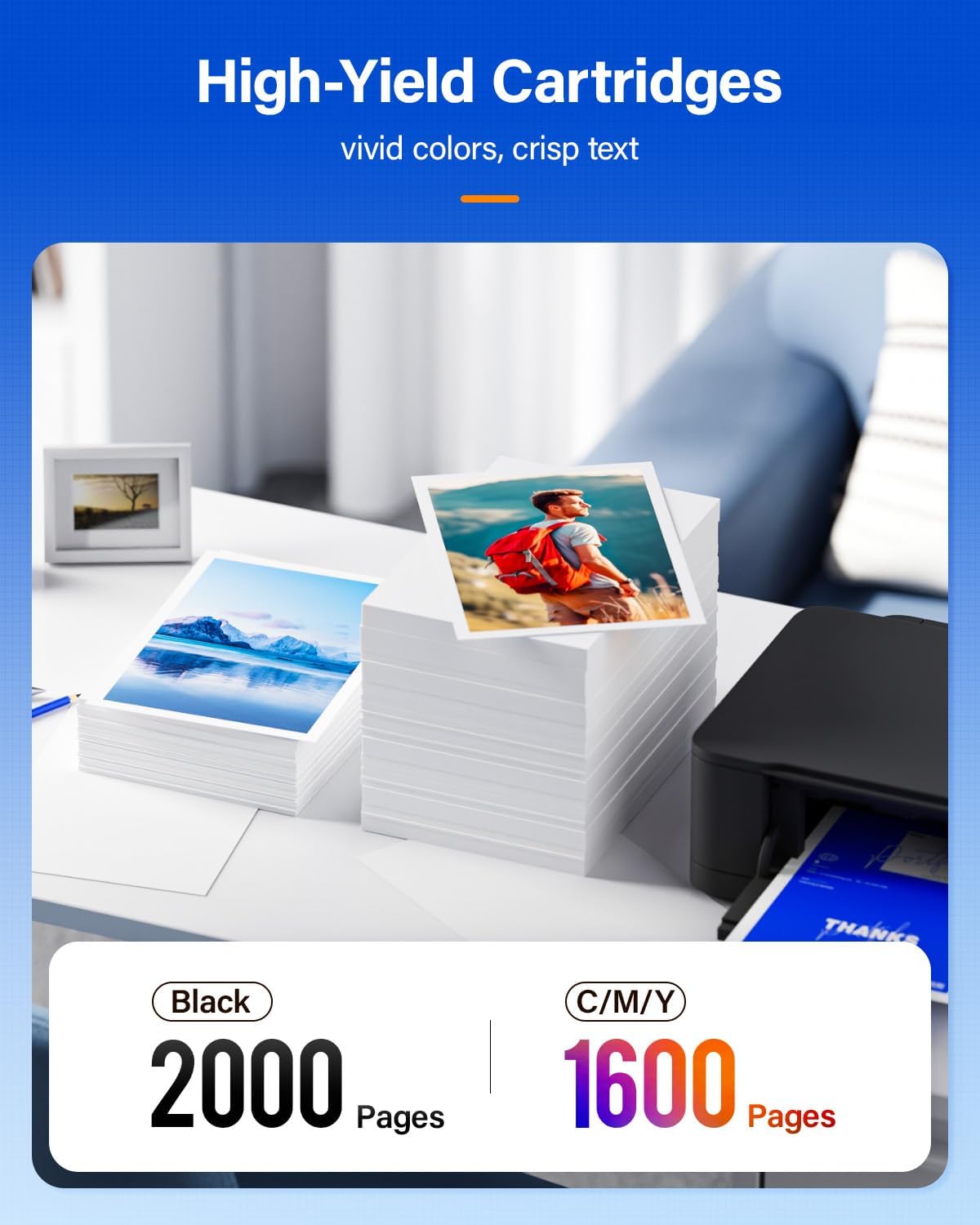 - 2X More Print Yield (approx.): 2,000 pages black, 1,600 pages each color (cyan, yellow, magenta), based on 5% coverage on A4 paper