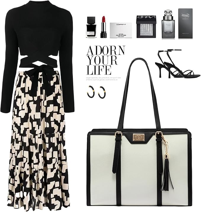 - 👜【Elegant & High Quality Laptop Tote Bag】 Our laptop purse is made of waterproof and wear-resistant canvas material, high quality PU leather edge embellishment. Tassel pendants add a sense of style to our cute laptop bag, it keep's our womens briefcase balanced and coordinated to keep it elegant at work and business.