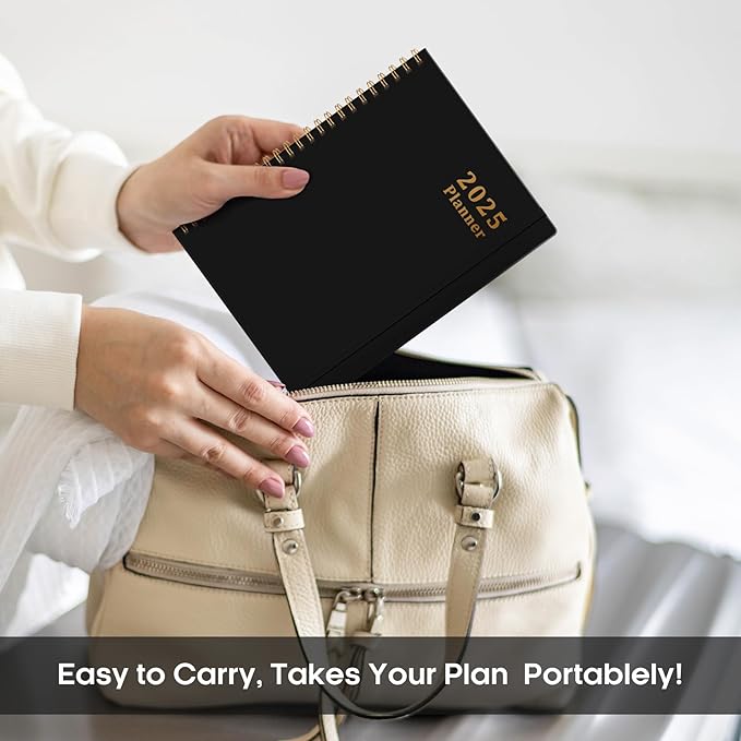 - Functionality Perfected, Style Exemplified: Revel in the embrace of 6.3" x 8.5" 2025 planner weekly and monthly, thick paper that exudes quality, and a hardcover cover adapting seamlessly to your lifestyle. Let monthly tabs and strong twin-wire binding elevate your planning journey, while the elastic band adds convenience for easy use. Contacts, a 2025 Yearly Overview, Reference Calendars, and 2025 Holidays enrich your journey.