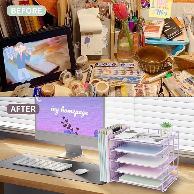 - 【Keep your desk clean】This space-saving paper organizer is the ideal solution for keeping your desk tidy and productive. Whether in an office, college dorm, or school classroom, it’s perfect for anyone needing efficient desk organization or classroom supplies