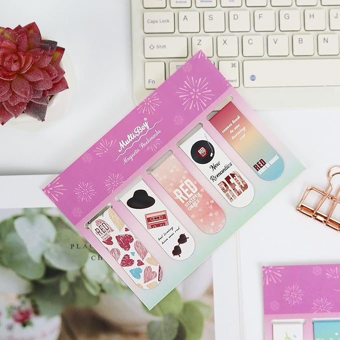 10Pcs Magnetic Bookmarks T-S Bookmarks Page Markers for Fans Readers, Women, Men, Book Lovers, Students Teachers, Funny Office Supplies Stationery Gifts Used in Office, School, Home (Red)