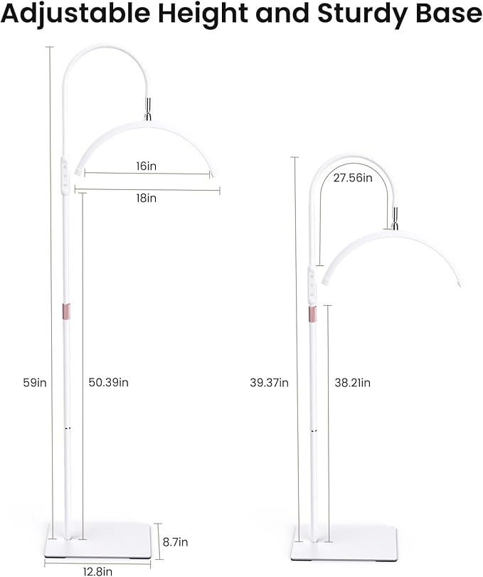 - HEIGHT ADJUSTMENT AND HEAVY-DUTY METAL BASE: The height of the Mznoo eyelash lamp can be adjusted from 39.37 inches to 59 inches, just loosen and tighten the rose gold adjustment ring to get a comfortable height. The metal base measures 12.8' x 8.7'' (L x W), and is heavy enough to keep a good balance with the lamp head, not easy to fall during use, we care about your concerns.