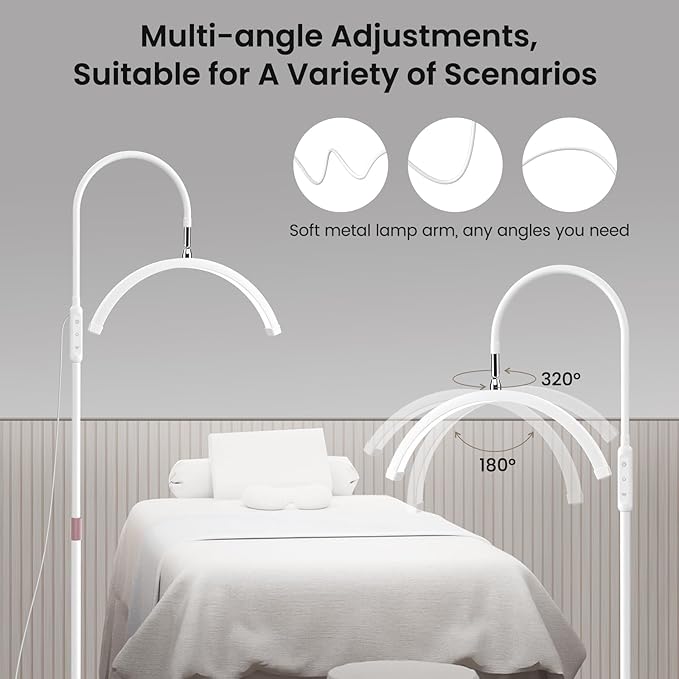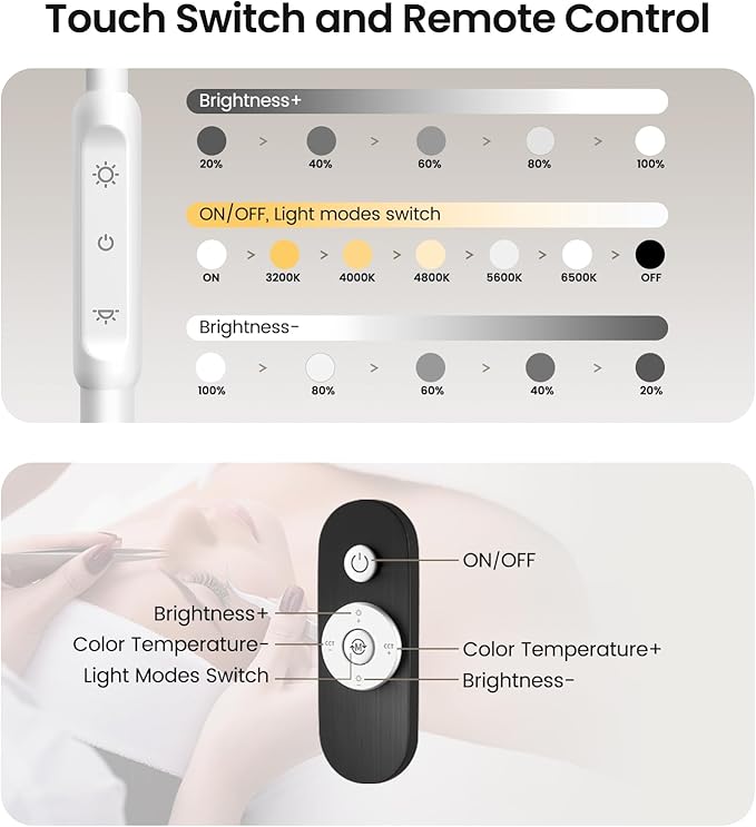- NO SHADOW LIGHTING AND LIHGT ADJUSTMENT: The half-moon lamp head designed can provide an operating area without ghosting or blind spots. With five color modes from warm to cool (3200K, 4000K, 4800K, 5600K, 6500K), and five brightness levels, you will have 25 lighting combinations to meet your needs. Mznoo half moon light would be a nice light source for the lash tech, nail tech, tattoo tech, and other detailed works.