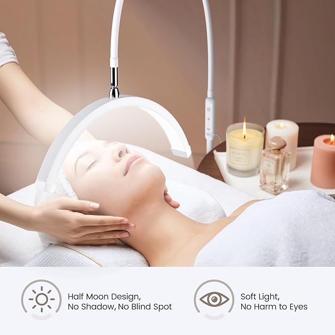 Lash Light for Eyelash Tech, Half Moon Light for Lashes and Estheticians, LED Floor Lash Lamp for Eyelash Extensions, Nail Art, Tattoo Art and Skincare (White)
