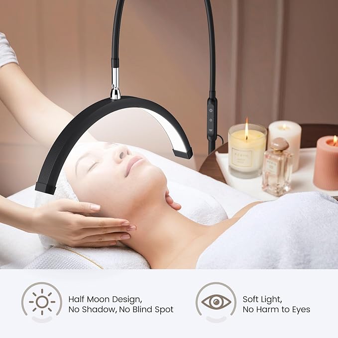 Lash Light for Eyelash Tech, Half Moon Light for Lashes and Estheticians, LED Floor Lash Lamp for Eyelash Extensions, Nail Art, Tattoo Art and Skincare (Black)