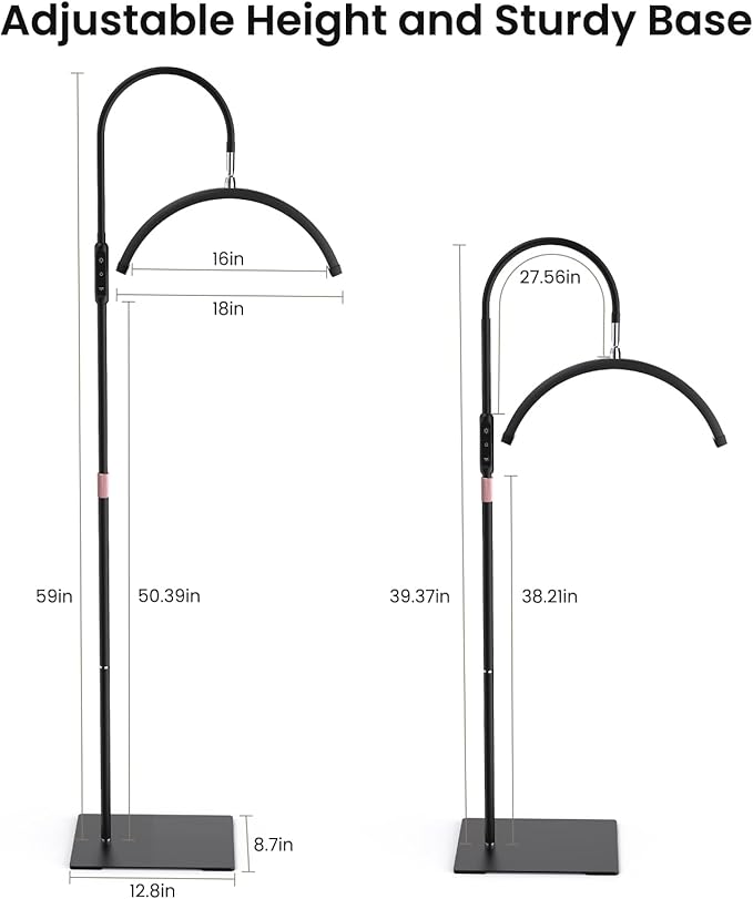 - HEIGHT ADJUSTMENT AND HEAVY-DUTY METAL BASE: The height of the Mznoo eyelash lamp can be adjusted from 39.37 inches to 59 inches, just loosen and tighten the rose gold adjustment ring to get a comfortable height. The metal base measures 12.8' x 8.7'' (L x W), and is heavy enough to keep a good balance with the lamp head, not easy to fall during use, we care about your concerns.