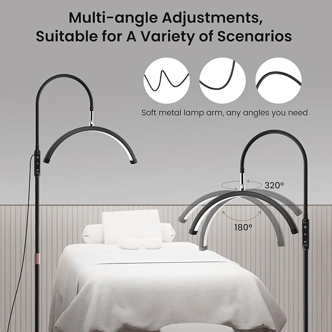 - NO SHADOW LIGHTING AND LIHGT ADJUSTMENT: The half-moon lamp head designed can provide an operating area without ghosting or blind spots. With five color modes from warm to cool (3200K, 4000K, 4800K, 5600K, 6500K), and five brightness levels, you will have 25 lighting combinations to meet your needs. Mznoo half moon light would be a nice light source for the lash tech, nail tech, tattoo tech, and other detailed works.