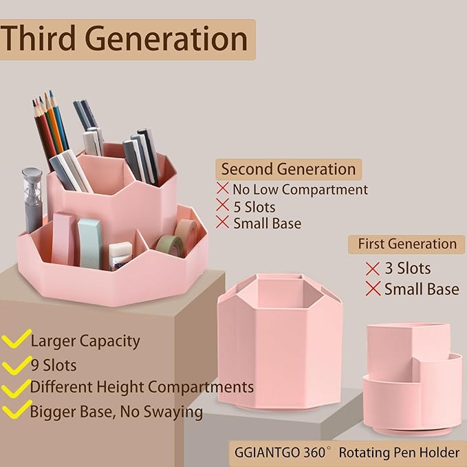 - 【360 Degree Revolving Design】This pen organizer for desk can be turned up to 360-degree rotation. It spins smoothly all around without getting stuck. Easy to access, easy to get from any angle, always keep your desk tidy and organized.