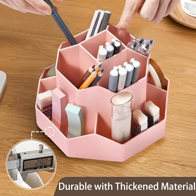 - 【Widely Used】It's not only can be used as a rotating pen holder for desk cute, but also perfect to be used as makeup brush holder organizer, makeup brush cup and more. Perfect for storing and holding all sizes of cosmetic makeup brushes, eyebrow pencils, eyeliners, hair accessories, nail polish, nail brush and lipsticks.