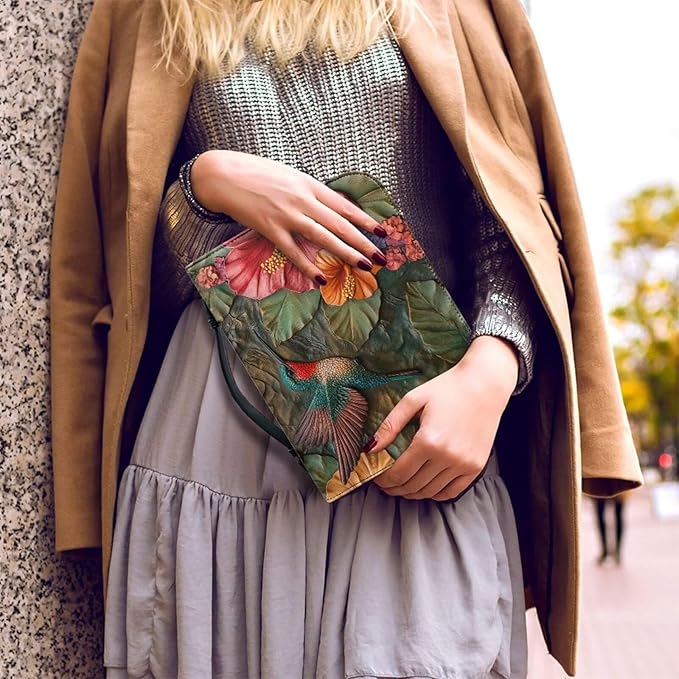 Lotusorchid Leather Bible Book Cover Case with Handle Pocket, Hummingbird Bible Cover Case with Pen Storage, Sturdy PU Bible Tote Bag, Bible Accessories, L