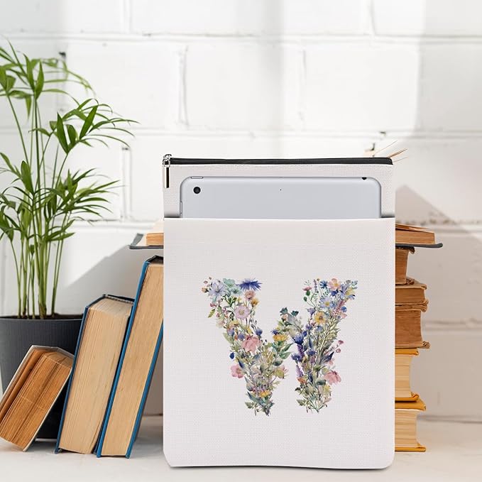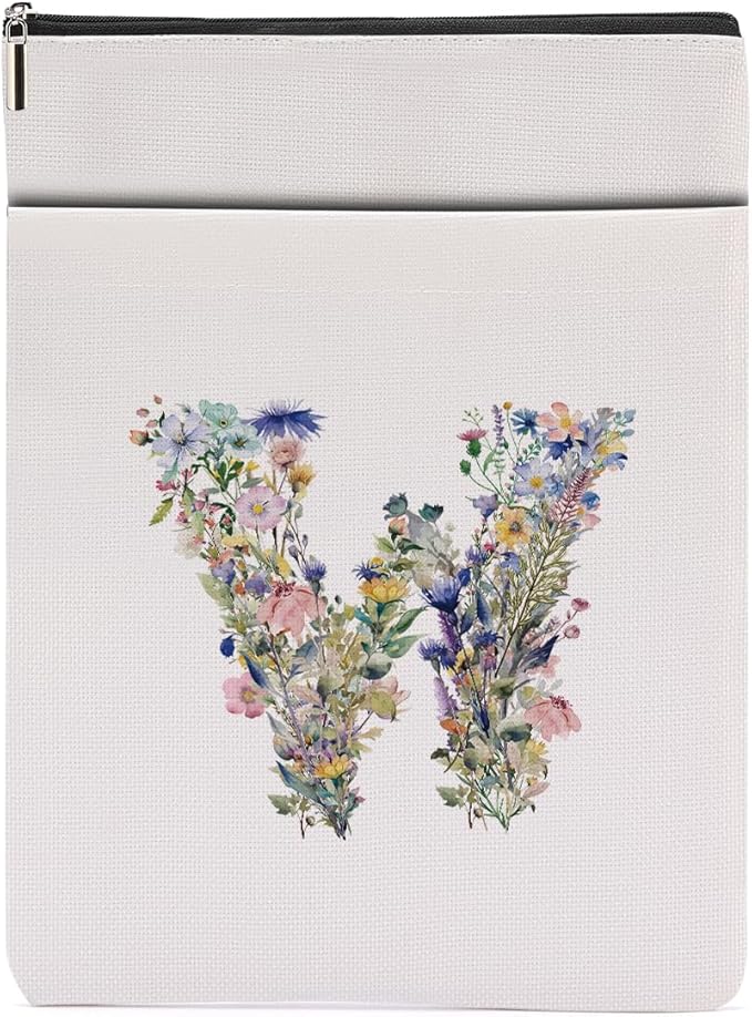 Monogrammed Book Sleeve Floral W Initial Book Pouch Book Accessories Book Lovers Gifts Waterproof Book Cover Book Protector Bookish Gifts Personalized Gifts for Women Girls Readers Bride Wife