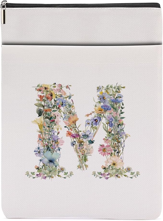 Monogrammed Book Sleeve Floral M Initial Book Pouch Book Accessories Book Lovers Gifts Waterproof Book Cover Book Protector Bookish Gifts Personalized Gifts for Women Girls Readers Bride Niece