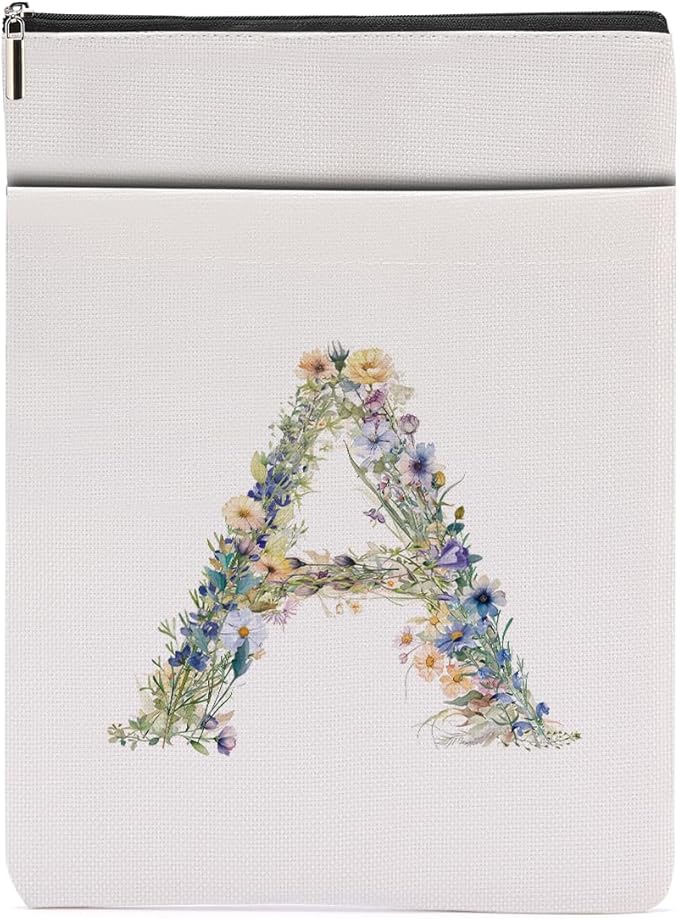 Monogrammed Book Sleeve Floral A Initial Book Pouch Book Accessories Book Lovers Gifts Waterproof Book Cover Book Protector Bookish Gifts Personalized Gifts for Women Girls Readers Bride Sister