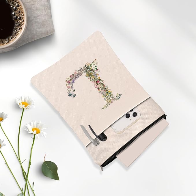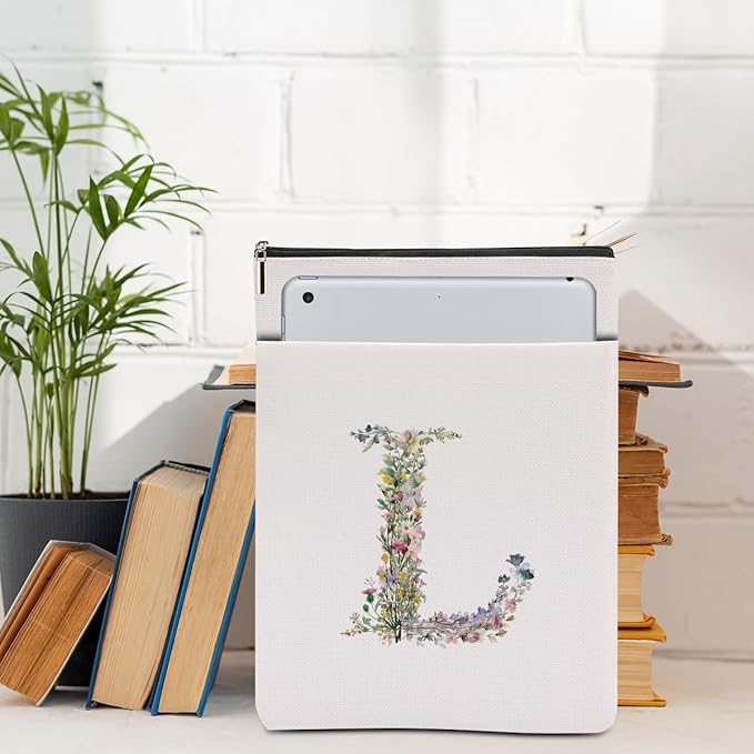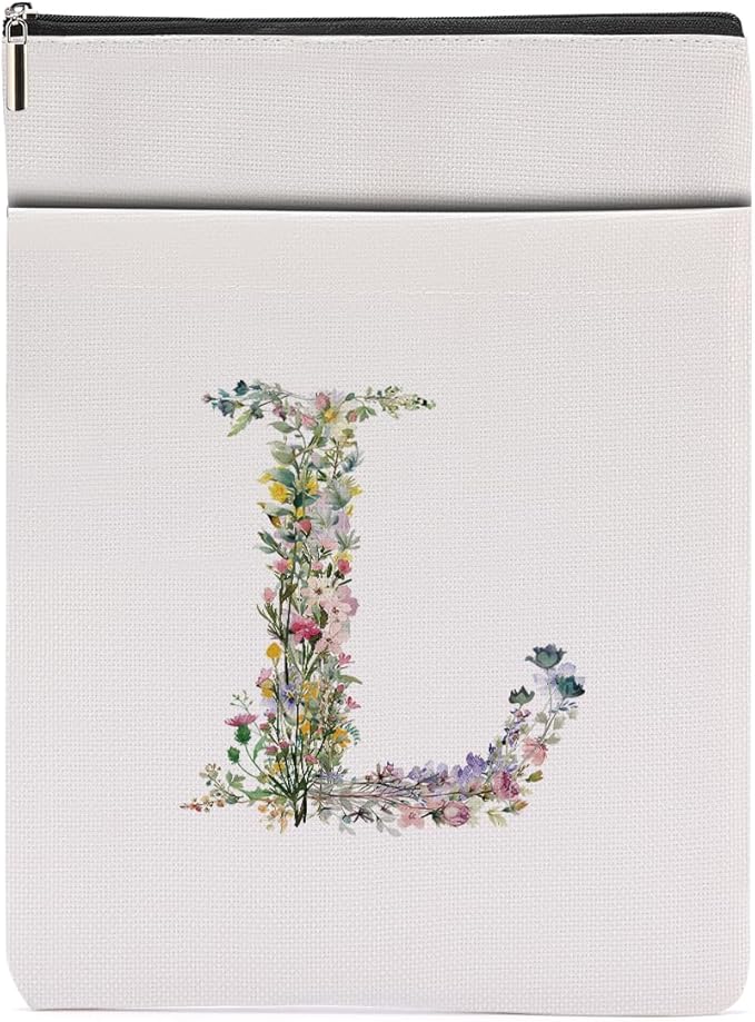 Monogrammed Book Sleeve Floral L Initial Book Pouch Book Accessories Book Lovers Gifts Waterproof Book Cover Book Protector Bookish Gifts Personalized Gifts for Women Girls Readers Bride Librarian