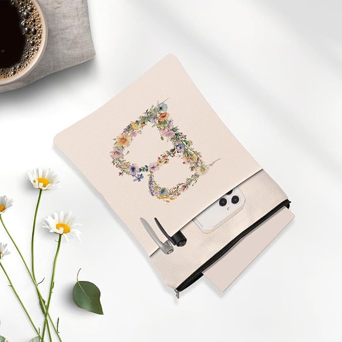 Monogrammed Book Sleeve Floral B Initial Book Pouch Book Accessories Book Lovers Gifts Waterproof Book Cover Book Protector Bookish Gifts Personalized Gifts for Women Girls Readers Bride Teacher