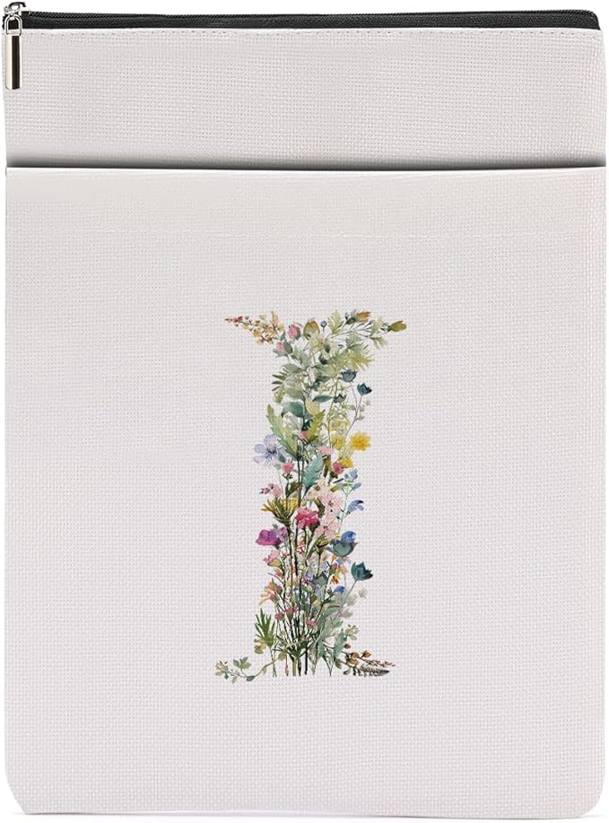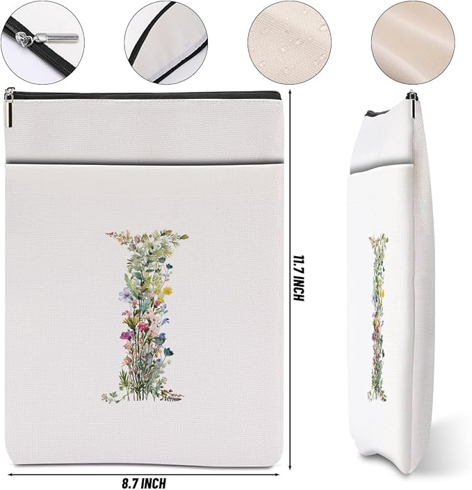 Monogrammed Book Sleeve Floral I Initial Book Pouch Book Accessories Book Lovers Gifts Waterproof Book Cover Book Protector Bookish Gifts Personalized Gifts for Women Girls Readers Bride Friend