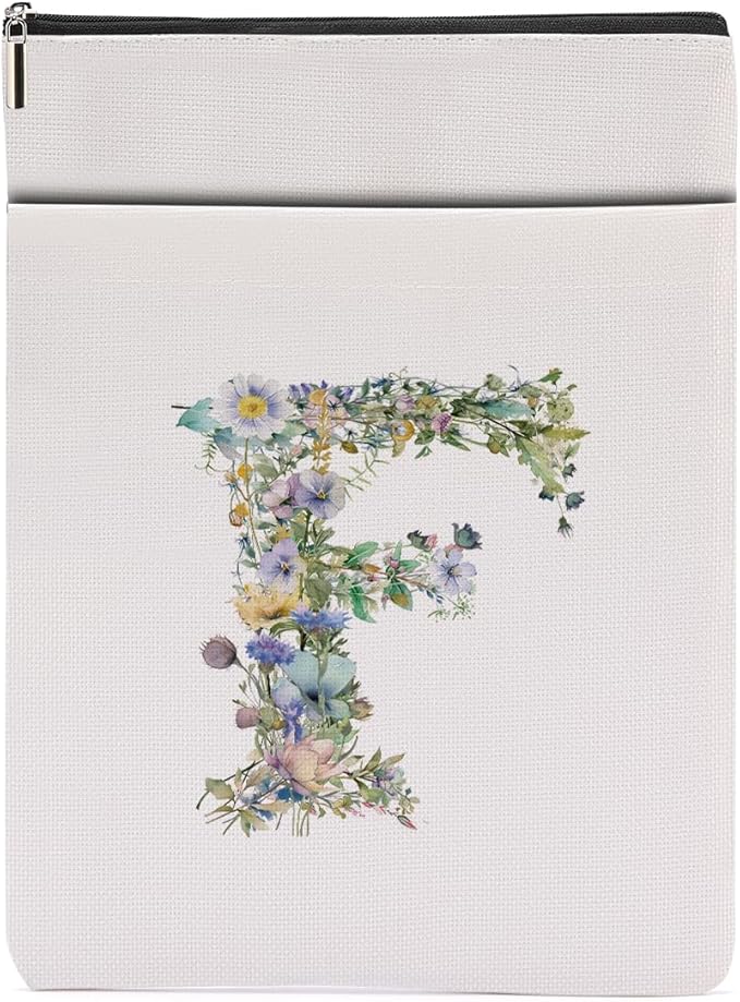 Monogrammed Book Sleeve Floral F Initial Book Pouch Book Accessories Book Lovers Gifts Waterproof Book Cover Book Protector Bookish Gifts Personalized Gifts for Women Girls Readers Bride Boss Lady