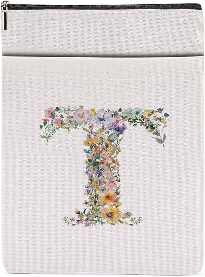 Monogrammed Book Sleeve Floral T Initial Book Pouch Book Accessories Book Lovers Gifts Waterproof Book Cover Book Protector Bookish Gifts Personalized Gifts for Women Girls Readers Bride Teacher