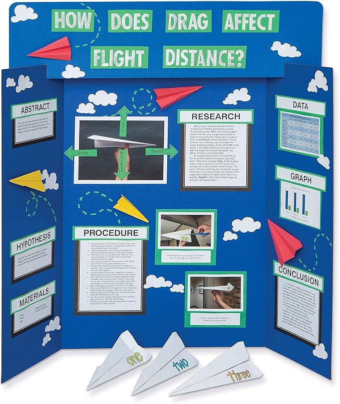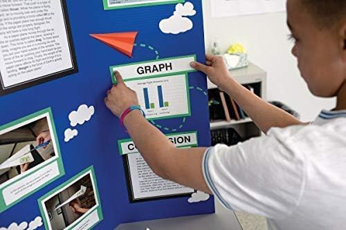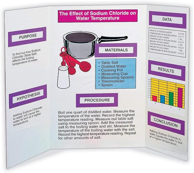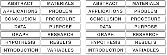 - Features black type with all letters capitalized on corrugated cardboard. Titles include abstract, applications, conclusion, data, graph, hypothesis, introduction, materials, problem, procedure, purpose, research, results and variables.