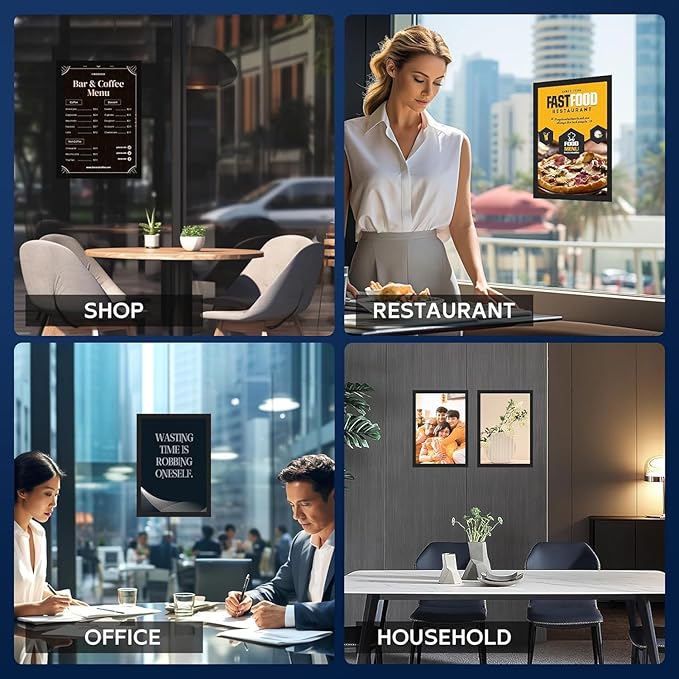 - 💡Versatile Frame:Home Walls and Refrigerators: Children's Artwork, Menu Plans, School Schedules, Schools, Offices: Stick Important Messages on Doors, Walls, Windows, Store or Supermarket Windows: Stick on Transparent Showcases, Display New Arrivals or Specials, etc