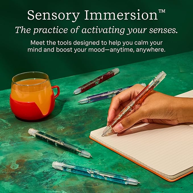 - Scented Ink: Each pen has a unique, invigorating scent from our Essential Oil Blends; the red pen features notes of cinnamon and ylang-ylang, and the blue pen - mint and grapefruit.