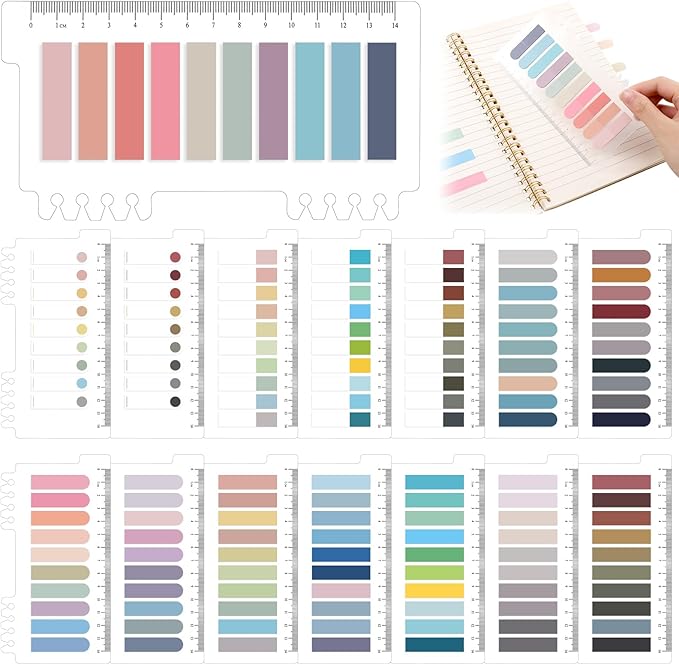 - đď¸ăNot Cause Damageă15 sets book markers with ruler for books, 1.6*0.5 inch. These clear sticky notes are sticks easily, and the adhesive stays put on the sticky tab and doesn't come off the computer. These page markers for notebooks have special stickiness, when you tear it off, it will not hurt your books.