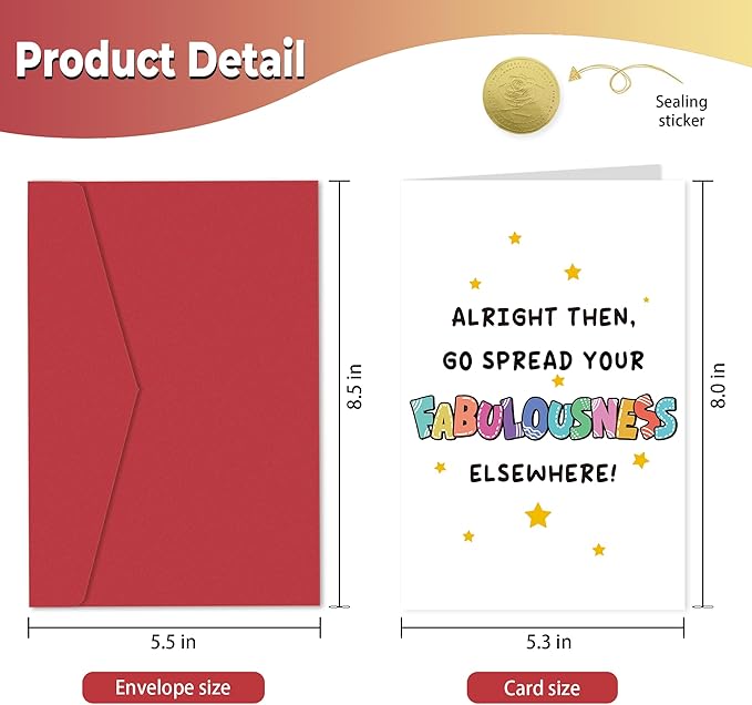 - Thoughtful Design: This funny leaving card features a humorous and relatable design, perfect for bidding farewell to a coworker or friend in a lighthearted manner.