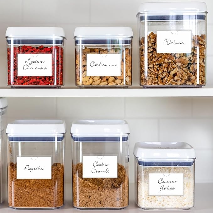 - Good Adhesive: No need for glue, the backing of label for storage bins is self-adhesive and can be easily attached to smooth surfaces such as plastic, glass, wood, metal, paper. It is not easy to leave adhesive marks when peeling off