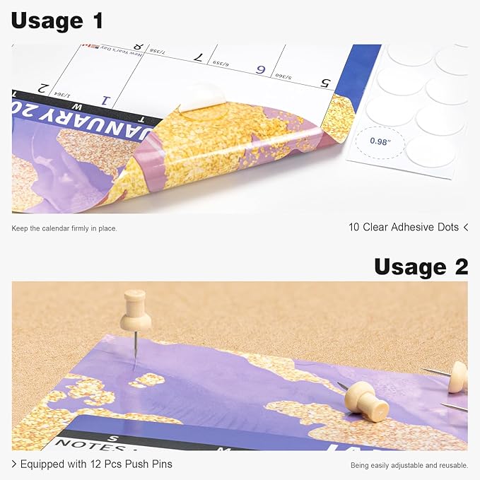 - ✨ Laminated Calendar with Dates: Waterproof wall calendar comes with a mini eraser, four dry-erase markers, 12 push pins, and 10 transparent round stickers. 2 yearly calendar planner covers the time range from Jan 2025 to Dec 2026, making it perfect for long-term use.