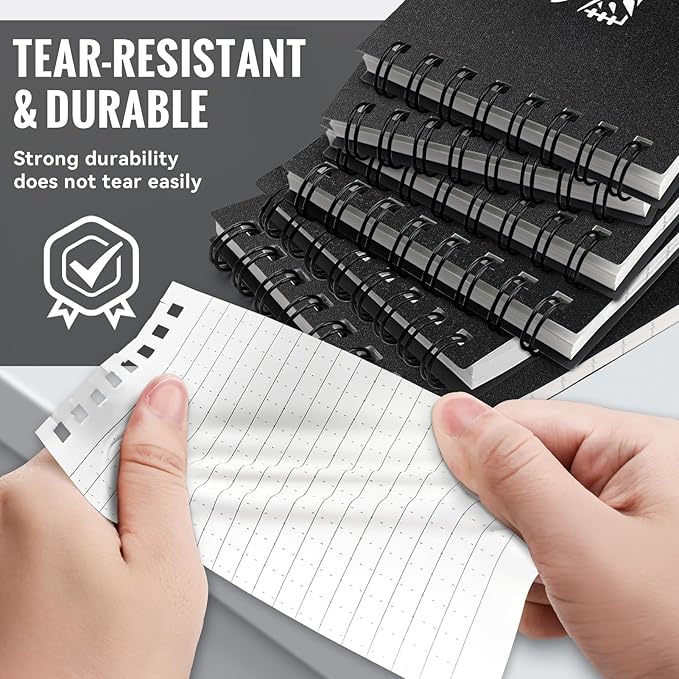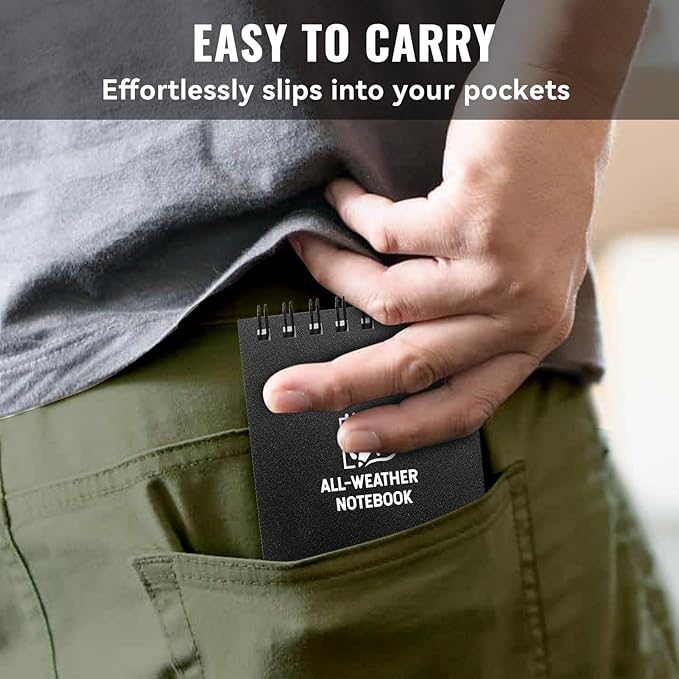 - Waterproof Notepad: No need to worry about your notes getting ruined by unexpected weather. Our waterproof notepad can be crafted to withstand water, sweat, grease, mud, and even laundry mishaps, your notes will remain safe and legible, allowing you to capture ideas, inspirations and memories without worry