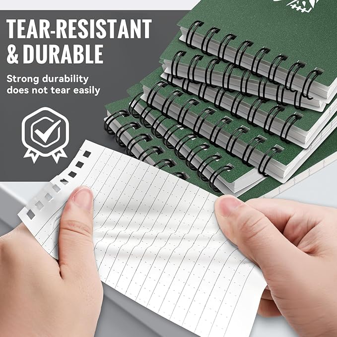 POPYOLA 6 Pack Waterproof Pocket Notebook, 3x5 Pocket Notepad, All Weather Mini Spiral Notepad, Write in the Rain Police Notepad with 100 Squared Pages for Outdoor Home Office School, Green
