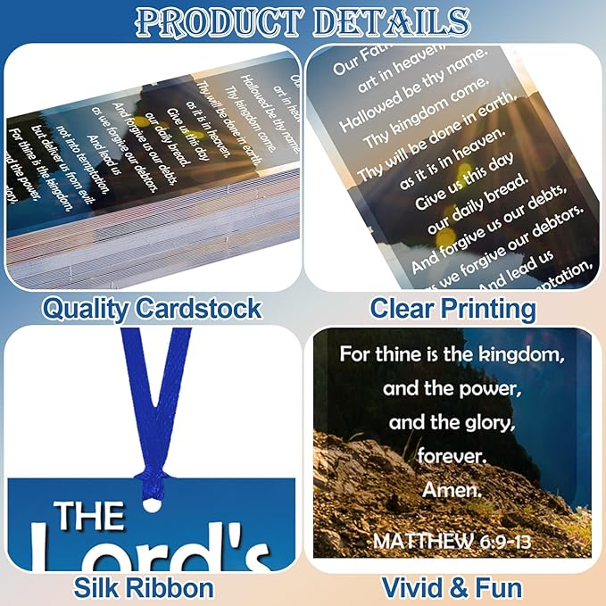 - Quantity and Styles: this package includes 60 pieces of lord's prayer bookmarks in 6 styles, 10 pieces per style, and 60 pieces of hanging ropes are also provided, enough quantity for sharing