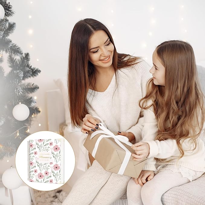 - Bouns Features - Beautiful golden corner protector, 2 detachable stickers, can be made monthly tabs or important page number mark, a pocket for storing papers, receipts, and documents. Crafted with high-quality paper and attention to detail, our large spiral bound planner features a durable cover, thick pages, and a lay-flat binding, ensuring it lasts the entire year