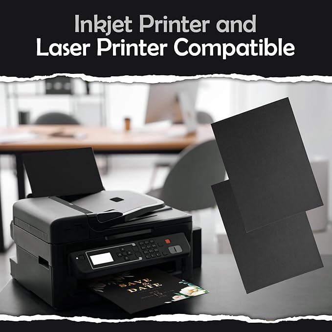 - đ¨ď¸ ăLaser & Inkjet Compatibleă Easily print on these blank black cards with any laser or inkjet printer. Perfect for creating personalized business cards, invitations, or postcards for mailing.
