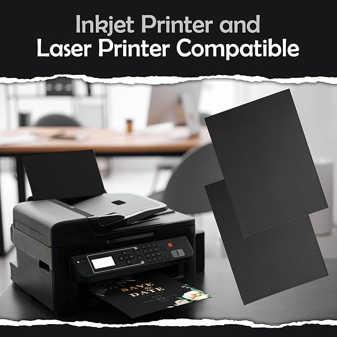SANZIX 120 Sheets Black Cardstock 5" x 7" - 80 Lbs 220 GSM | Heavyweight Thick Paper Black Cardstock 5x7 | Perfect 5x7 Black Cardstock Printer Paper for Menus, DIY Cards, Invitations & Postcards