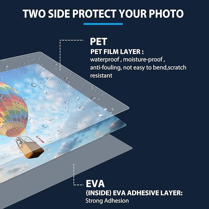 - Application:Perfect for protecting certificates,signs,photos,awards,calendars,kids artworks. It can seal and protect your documents it can be used in classroom, home and office. Compatible with all thermal laminator machine brands. Thermal laminator needed, not self-adhesive