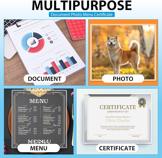 - Premium Material: Crystal clear, glossy sheen, sturdy and Premium material. Laceration resistant, double coating, anti-stain, sturdy and waterproof, protect your document from scratching