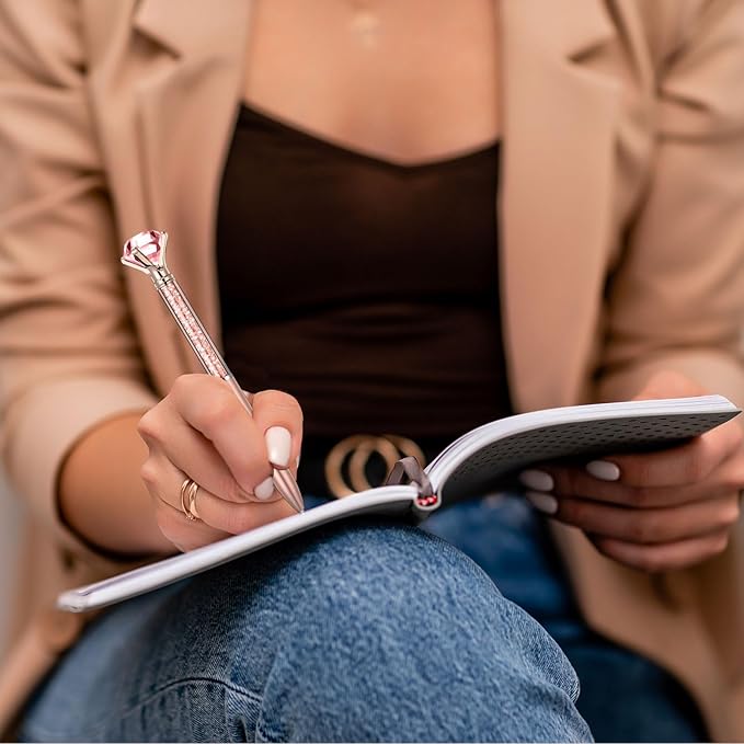 - Quality Material: the outer body is made with a rose gold quality plastic that is guaranteed to be long lasting and well constructed; Each bling ballpoint pen is topped with a large diamond shaped crystal gripped by prongs