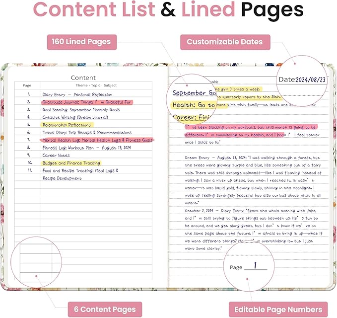 - Lay-Flat Design for Effortless Writing: The 180° lay-flat design makes writing a breeze for both left- and right-handed users. Whether you're jotting down quick notes or composing longer entries, this notebook provides total ease and comfort on any surface.