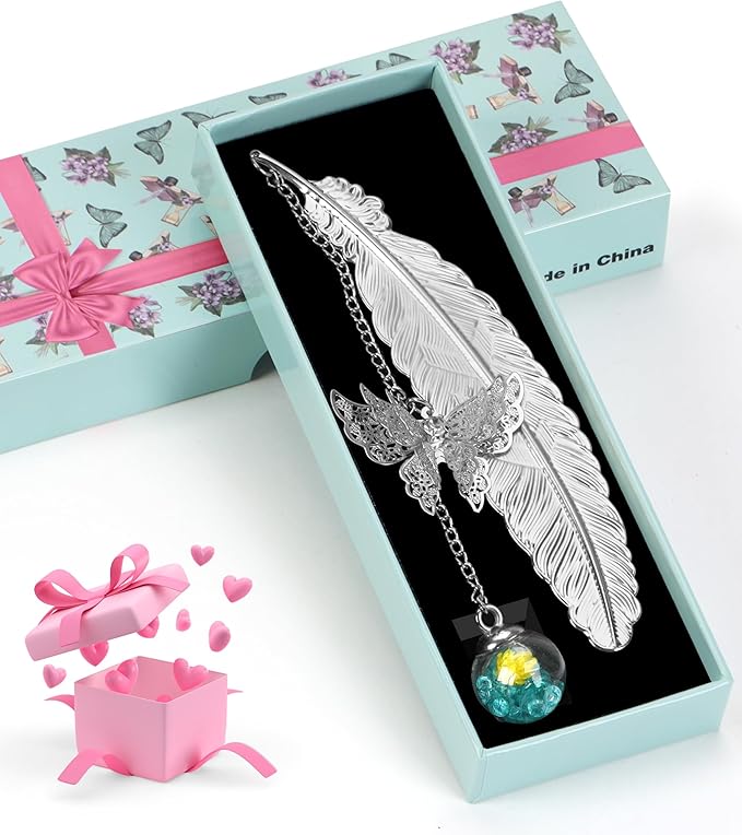 - Exquisite and Unique Packaging: The feather bookmark comes in distinctive, elegant gift packaging. A bow on the box highlights the thoughtful presentation, while the foam-padded groove inside protects the glass orb on the bookmark from damage. The GRANDFUN bookmark is perfect as a white elephant gift for adult women teachers, a gift for mom, or a Christmas stocking stuffer for women and daughters. The metal feather bookmarks can also work as a wedding present, souvenir, or business gift.