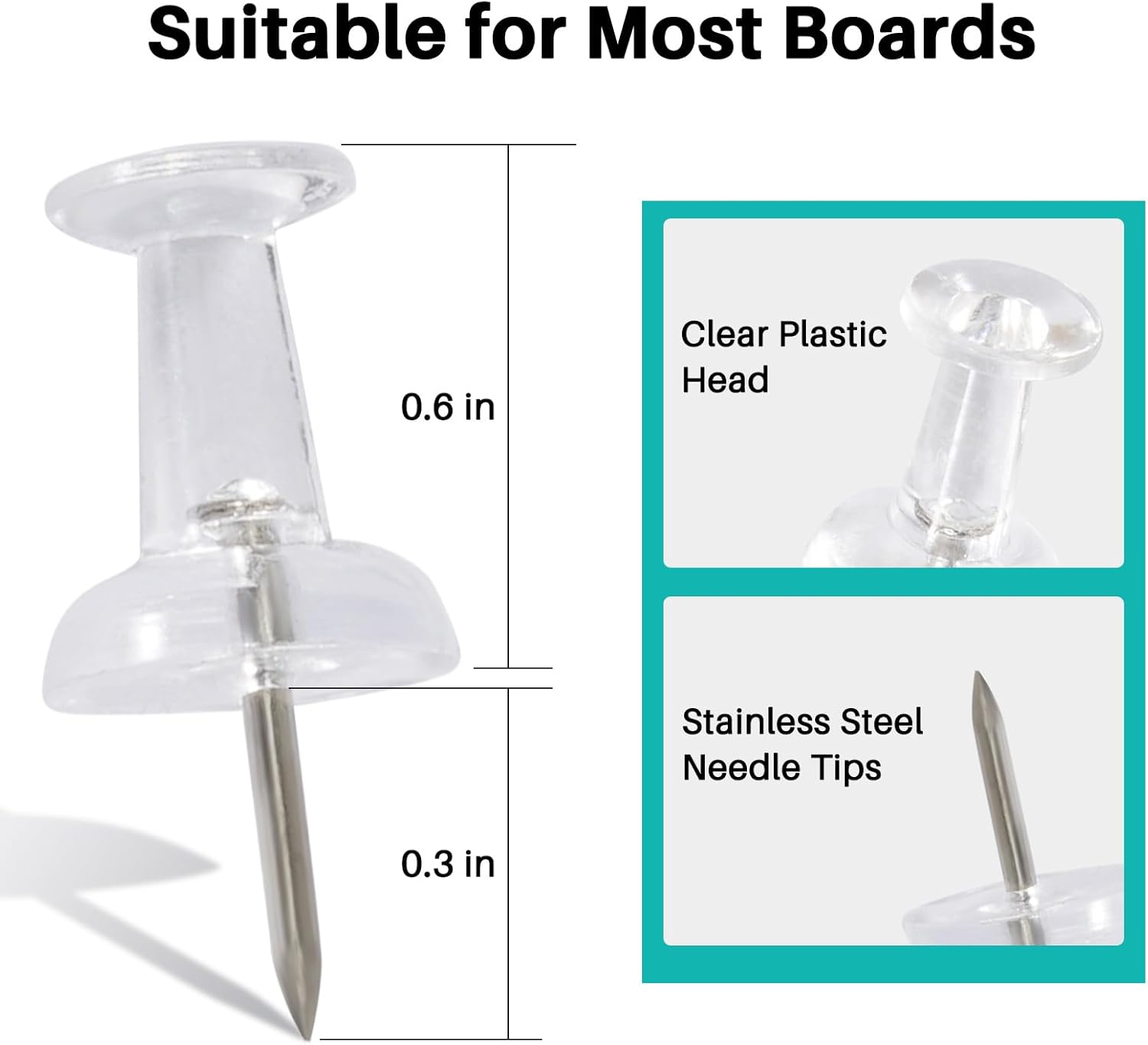 120Pcs Push Pins for Bulletin Board, Thumb Tacks for Cork Board, Clear Plastic Head, Steel Tip, Thumbtacks for Wall Poster Photo Maps Pictures Office Home Decor