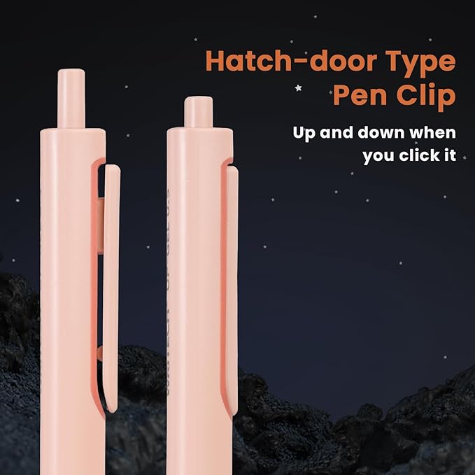 - Unique hatch-door-type pen clip design, up and down when you retract the pens